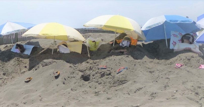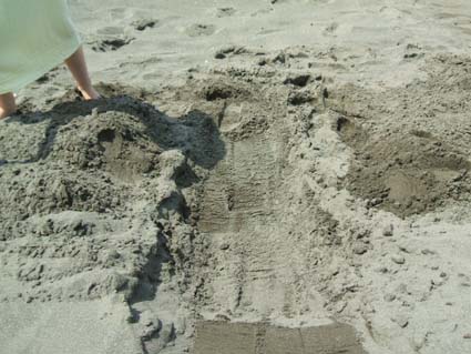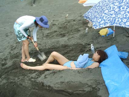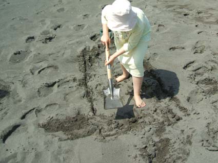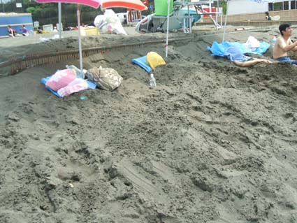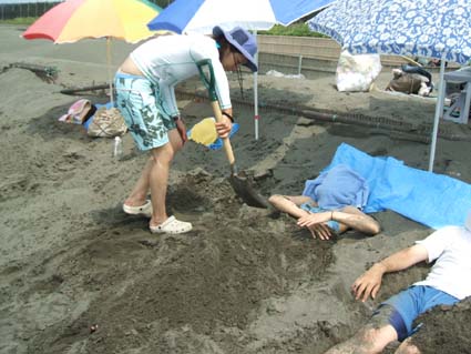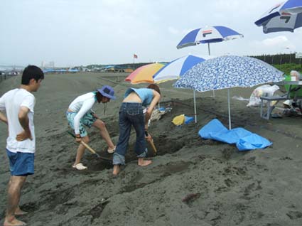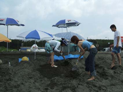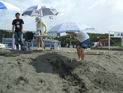 | 砂の表面は予想以上に暑いです。朝9時前後からはじめます。 |