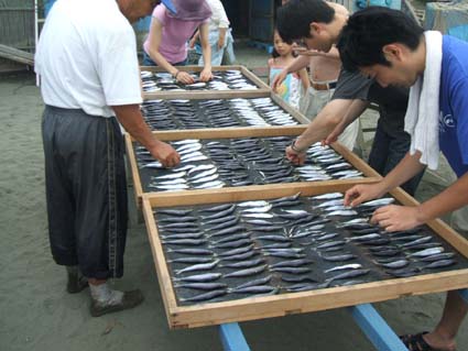 (おまけ画像)地引網で取れた生シラスを浜でかまゆで |