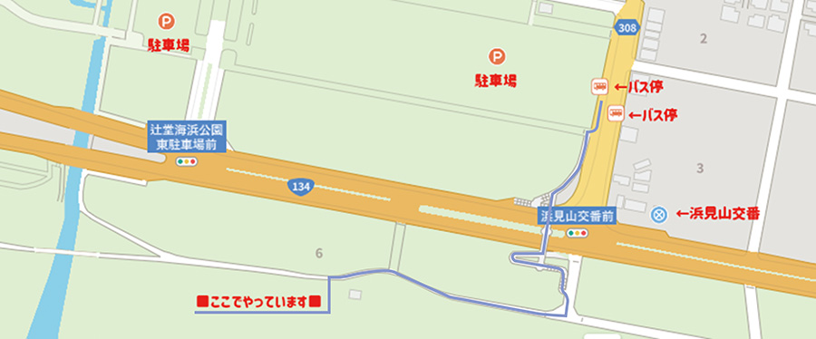 車でお越しの場合は 海浜公園東駐車場 辻堂西海岸3−2−1