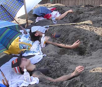 もちろん砂は全国にありますから、やる気になればどこでもできますが、一人ではいるのはなかなか勇気がいります。砂に埋まって一人で寝ていると不安になりますね。事件と思われて警察が来たという話もあります。